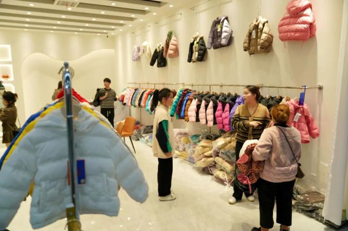 顾客在平湖中国服装城购买羽绒童装。新华社记者 韩传号 摄