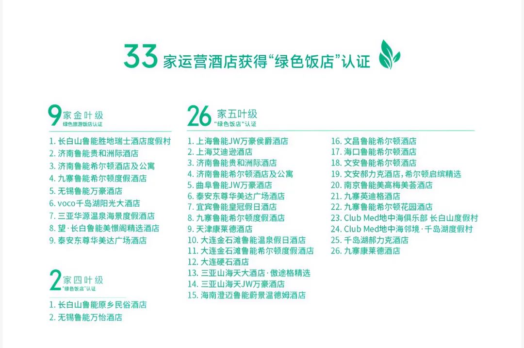 截至目前,中国绿发旗下33家经营酒店已获得绿色酒店认证,成为国内首家实行绿色认证全覆盖的酒店专业管理集团。