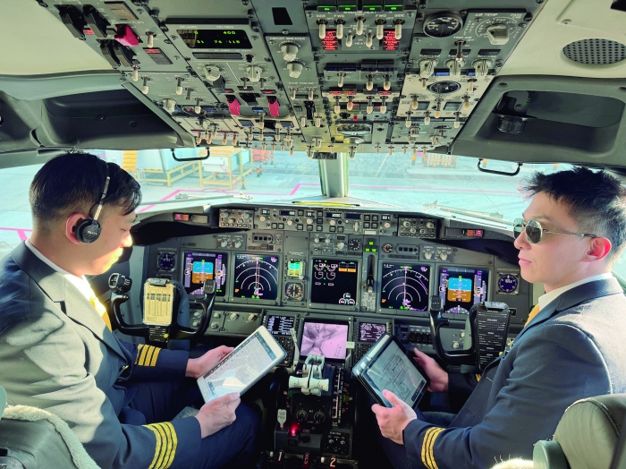 一月十四日,在南航CZ8233广州-成都天府航班上,空乘人员与C919国产大型飞机进行了互动。 新华社图