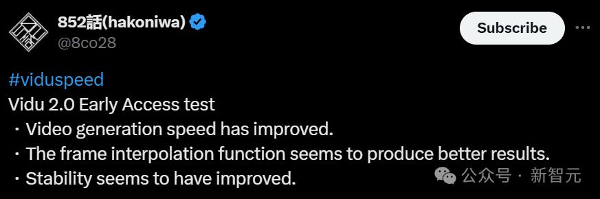 首先获得内测的网友在社交平台上评论说,Vidu 2.0在生成速度和质量上都很出色。