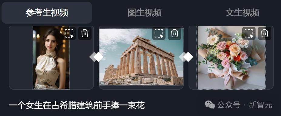 上传一张女孩、帕特农神庙和一束花的照片,Vidu 2.0在一个场景中自然地展示它们,画面自然而美丽。
