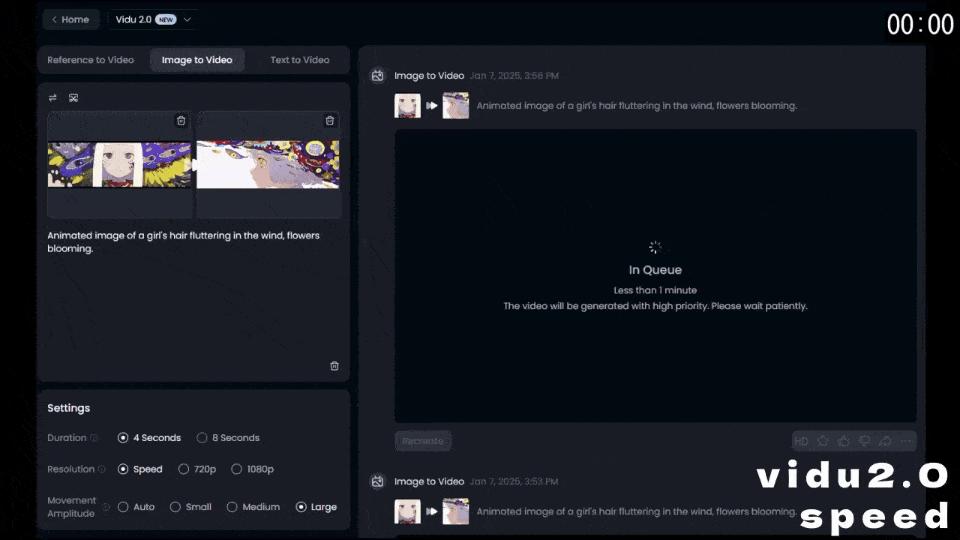 此次,Vidu 2.0版本更新,更是将这一优势发挥到了极致。