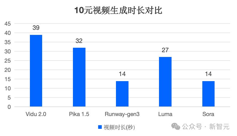 举例来说,如果所有的初级套餐都是720p,那么Sora10元只能生成14秒的视频资料,而Vidu 2.0可生成39秒的视频资料,比其他家庭更具性价比。