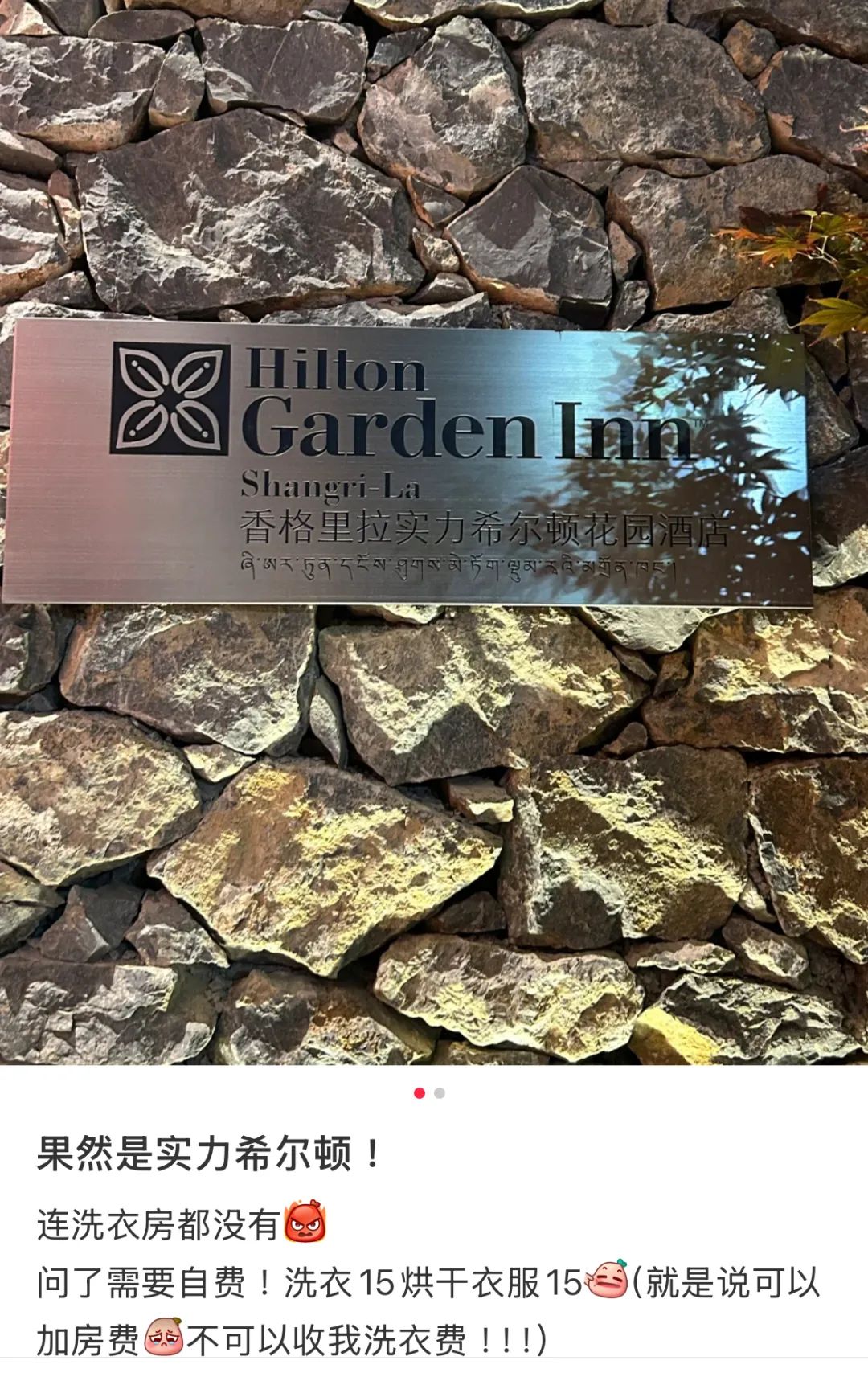 有些人在希尔顿花了1000多元。结果他们发现花园酒店的居民自助洗衣也要收费,洗衣15干15。评论区有人科普。“酒店越高端,没有免费的自助洗衣房。没有这笔钱怎么证明我们的品牌大?”所以确实有大牌感,但是真正需要洗衣服的农民工默默承受一切,在1000元的房费之外,给LG洗衣机交30元的“高贵税”。