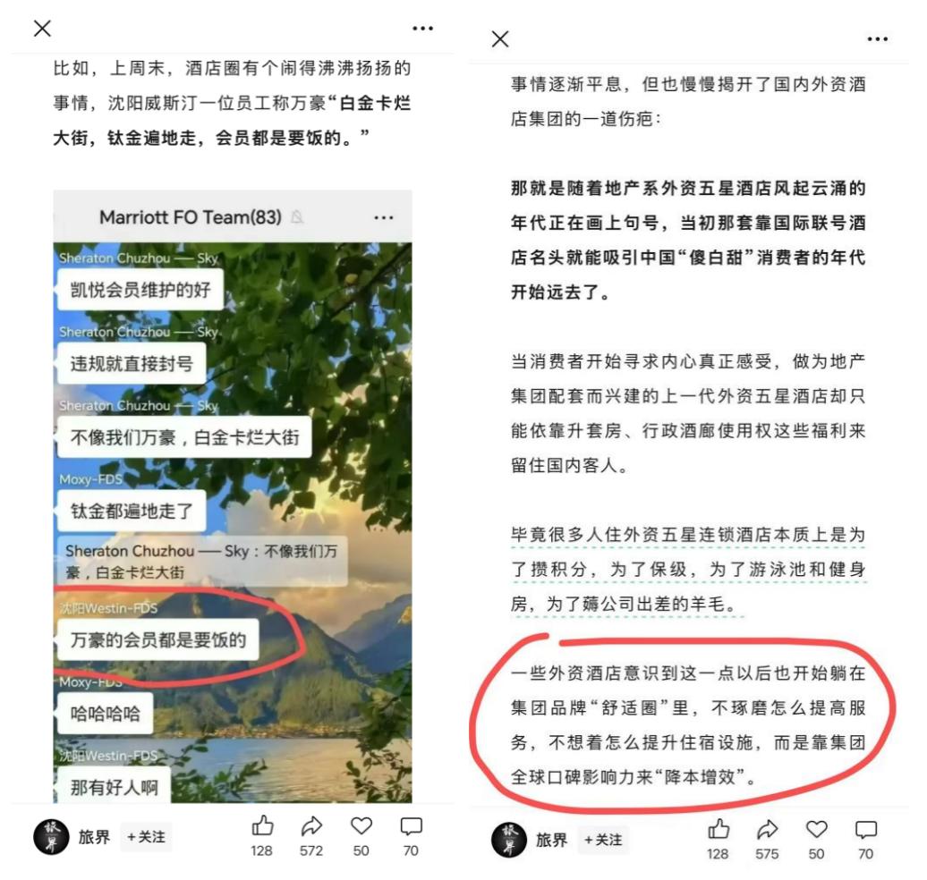 高档酒店一直给人一种“老贵族”的感觉,而与国际品牌相关的批评,也远不止“送一双拖鞋”。