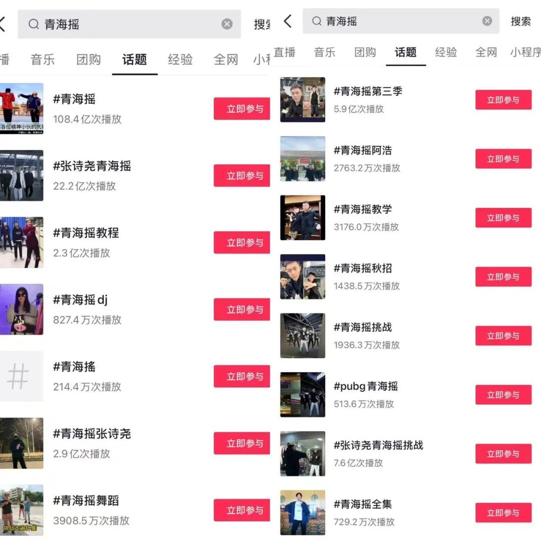 青海摇的热度随着一系列关于切片的大规模传播而上升。到目前为止,与#青海摇摆 相关话题下,视频总播放量接近150亿,而曾经的土味精神小伙张诗尧也因此突破了圈子,赢得了更多人的喜爱。