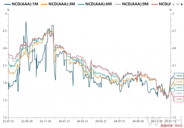 国有和主要股份制银行一年期同业存单二级最新交易在一年期 与前一交易日相比,1.5%的收盘回落 1.5bp。