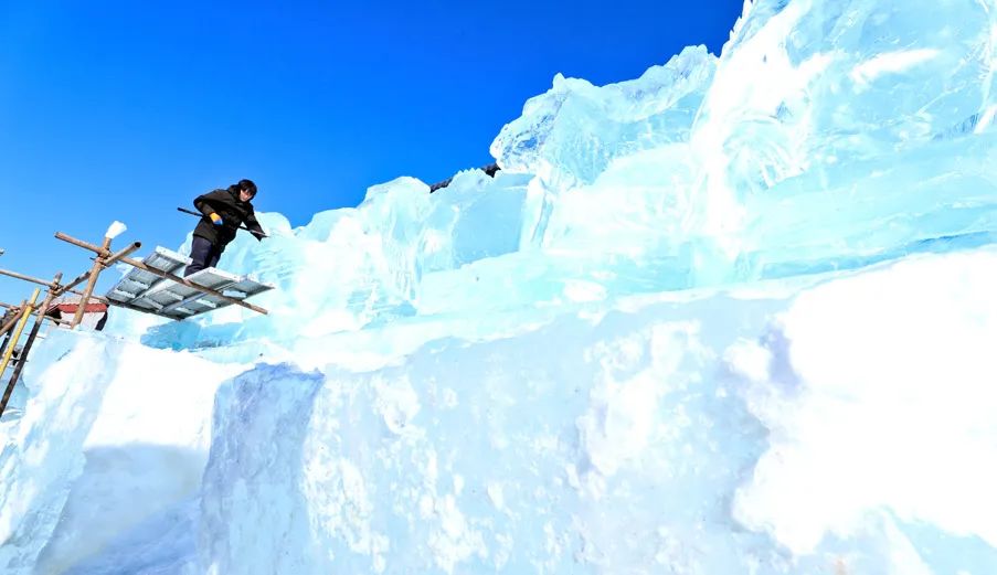 随著春节的临近,甘州府城文化旅游景区的冰雕工匠们加班加点,全力以赴制作大型冰雕。以爱国教育、长城、丝绸之路、人们幸福美好生活为主题的冰雕作品,充满了丰富的文化内涵和美好的寓意。他们的努力只是为了在春节期间为游客呈现一场精致的冰雕艺术盛会,让我们在冰与光的交织中感受到春节的喜悦和浓厚的文化氛围。(王 将 李自海)