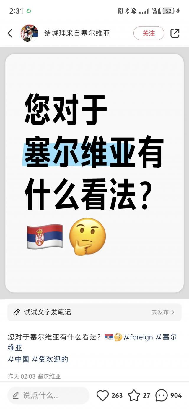 综上所述,就是“中国人怎么看”?在他们的潜意识里,中国人的评价很重要!比如如何看待塞尔维亚,中国网友直接在评论区展示了刻有中文的贝尔格莱德纪念碑...这种患难与共的感觉是众所周知的。