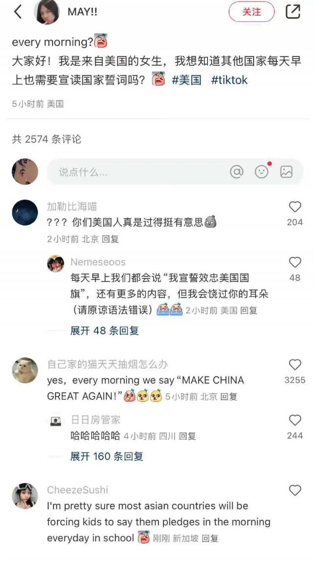 更多的中国用户和美国客户开始在小红书“查账”。有人问:“大家好,我是美国女孩。你想每天早上在中国宣读我们的誓言吗?”是的,是的,我们每天早上都喊。 make China great again ……"