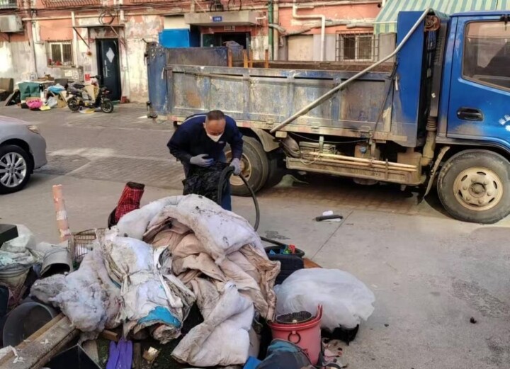秋季西里社区居委会协调海洋物业清理秋季西里1-20栋长期堆放的杂物,让居民在干净清爽的环境中过年。(图片由秋季西里社区居委会提供)