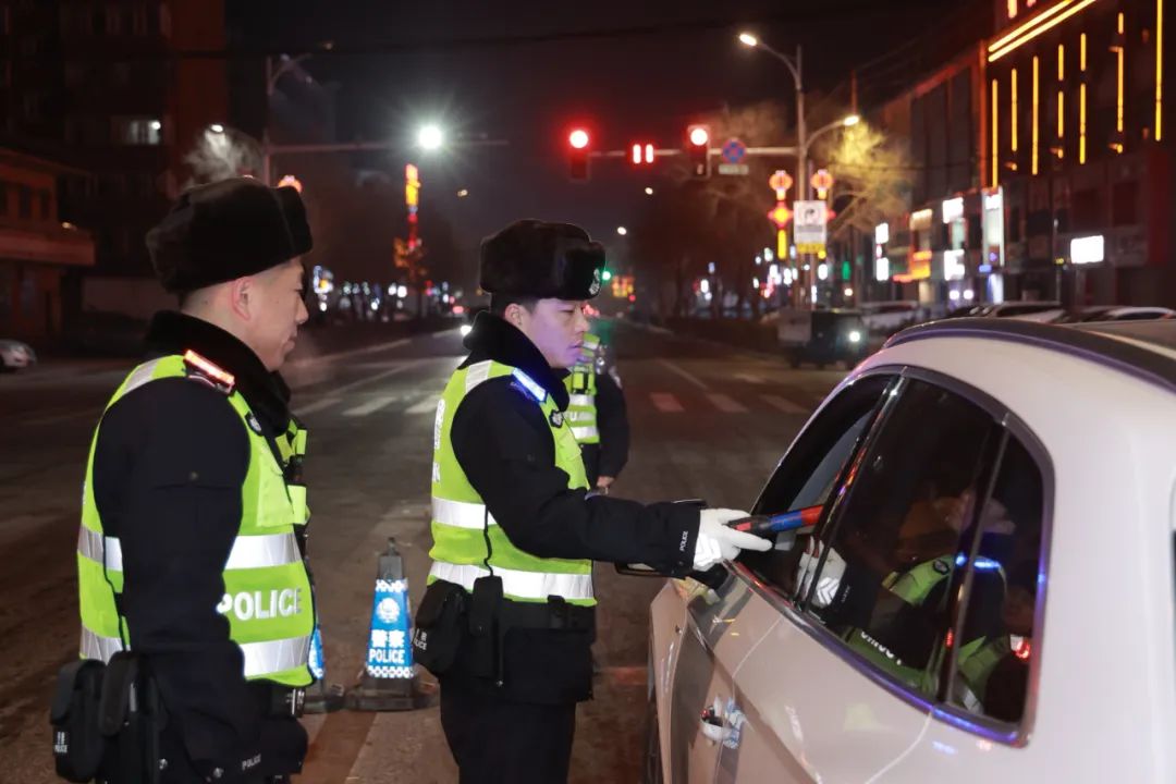 【冬季行动】看警察、看警车、看警灯:镇上的公安人员进行集中检查,确保公共秩序。