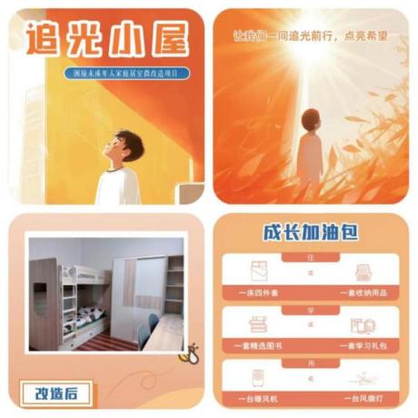 如果发现身边有需要帮助青少年的地方,可以联系当地团体组织和青少年事务社会工作机构。如果你是一家爱心企业,想在后续提供更多的公益支持,可以在微信微信官方账号后台留言“筑梦新虹”。我们也邀请您分享您对“追光小屋”困境未成年家庭客厅微改造项目的建议和意见,为孩子们的未来做出贡献。