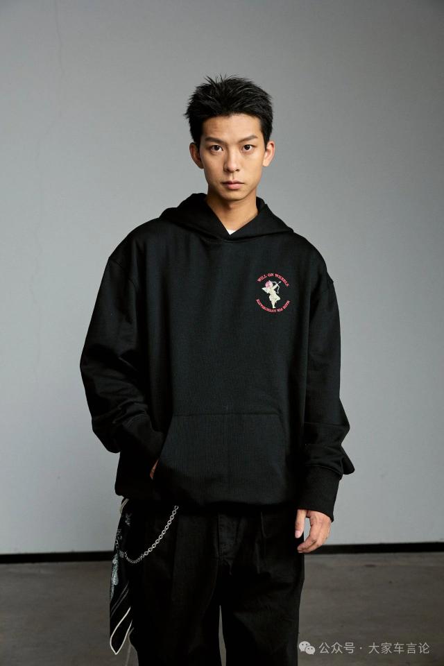 后面有红色刺绣字体的加持,在不夸张高调的情况下增添了氛围感。喜欢红色作为装饰品的朋友强烈推荐这件可爱的连帽毛衣。