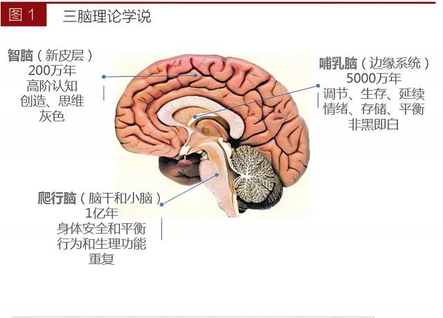 人类大脑有三种类型,本能大脑、情感大脑和理性大脑,而大脑发育的过程是:先发展低级,再发展高级,的。