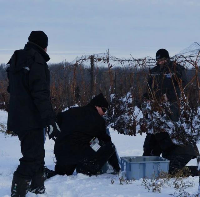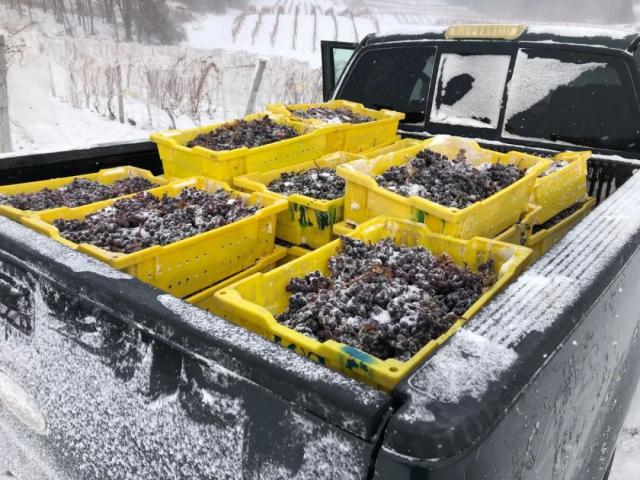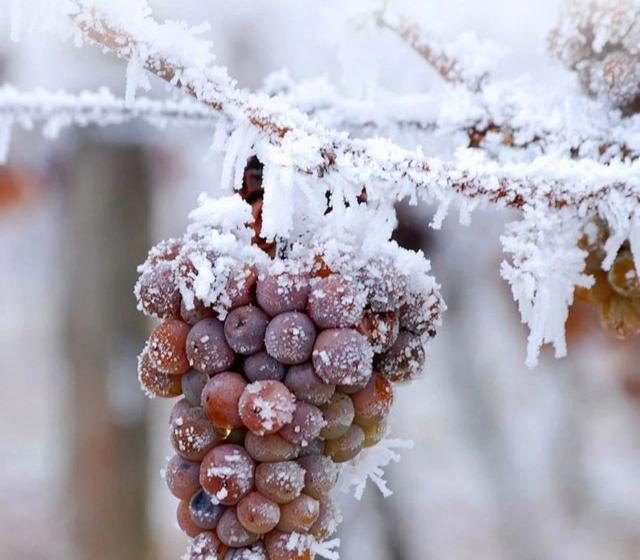 当 12 月至 1 月份,气温降至零下 8 度时,葡萄冻至凝固,人工采收和挤压工作才开始。
