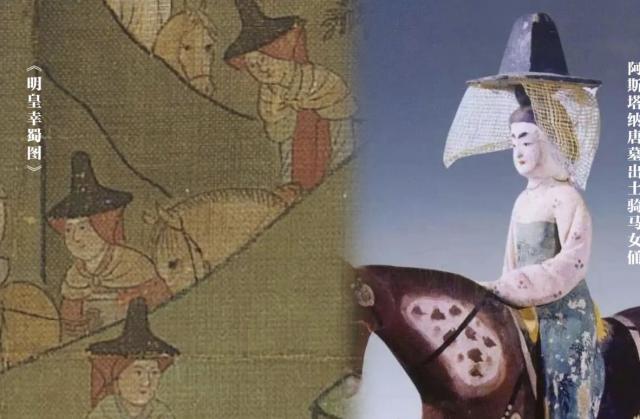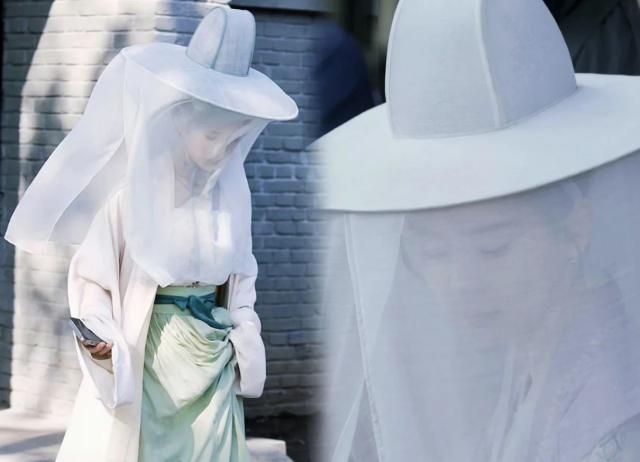 盖子和帘帽还是不一样的,按照沈从文先生的说法:“有属于硬帽下垂网帘的,应该是帷帽”,简单地说,如上图所示,帷帽便是笠帽 网帘。帽子通常是近黑色的。