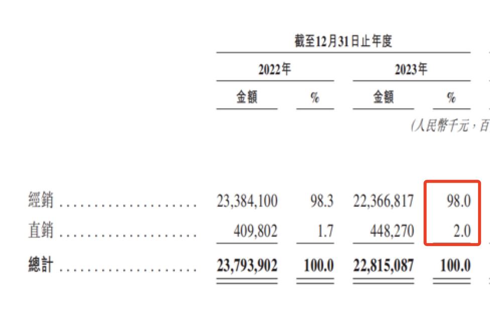 经销商带来的收入也构成了海天收入来源的绝对主体。2023年,海天味业经销渠道收入223.67亿元,占98%;而且直销收入仅为4.48亿元,占2%,经销渠道收入是直销收入的近50倍。