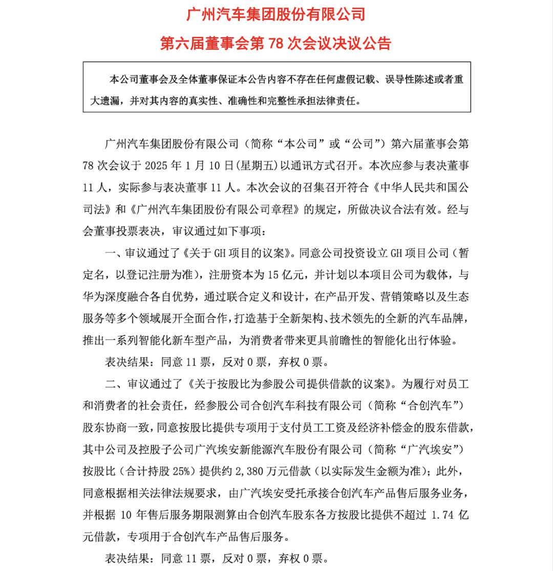 汽车东西1月16日报道,在最近的股东大会上,广汽集团的《关于按股比为股东提供贷款的建议》获得了全票通过。该建议规定,广汽埃安将为合创汽车提供约2380万元的贷款,为员工提供保障,并提供1.74亿元的贷款承担售后服务。