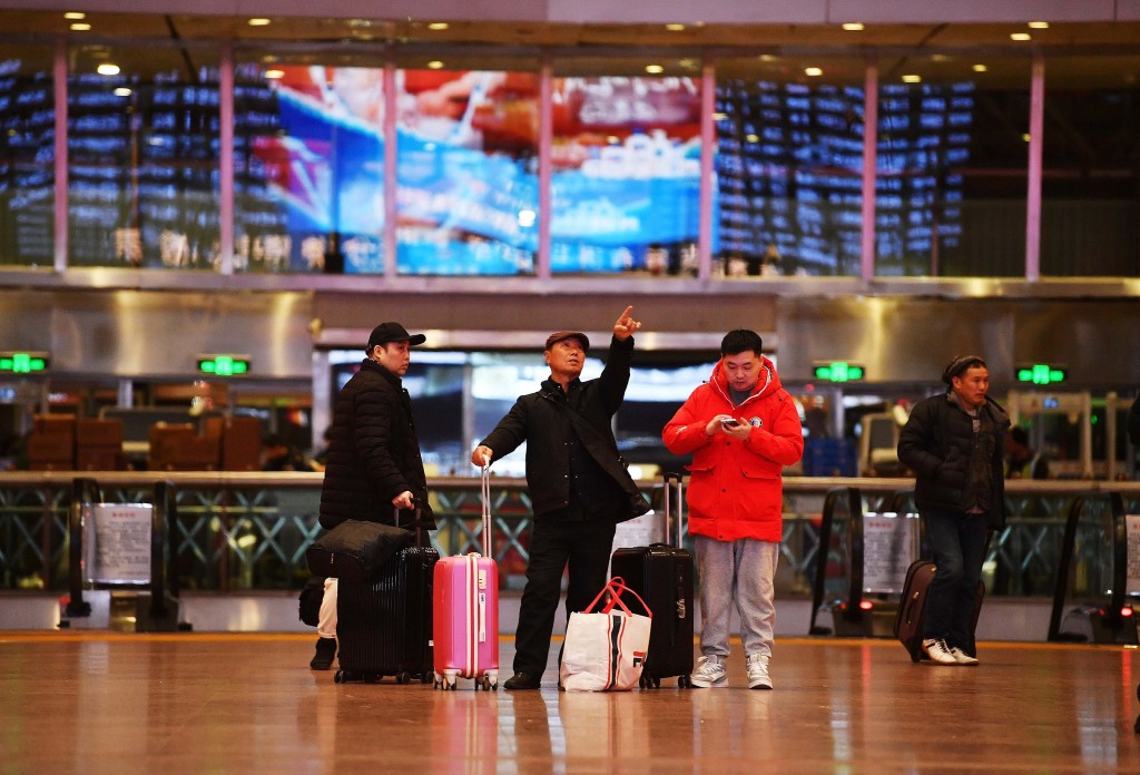 2025年1月14日,在北京,乘客们在黑暗的候车大厅里寻找乘坐频率,找到回家的路。视觉中国 图