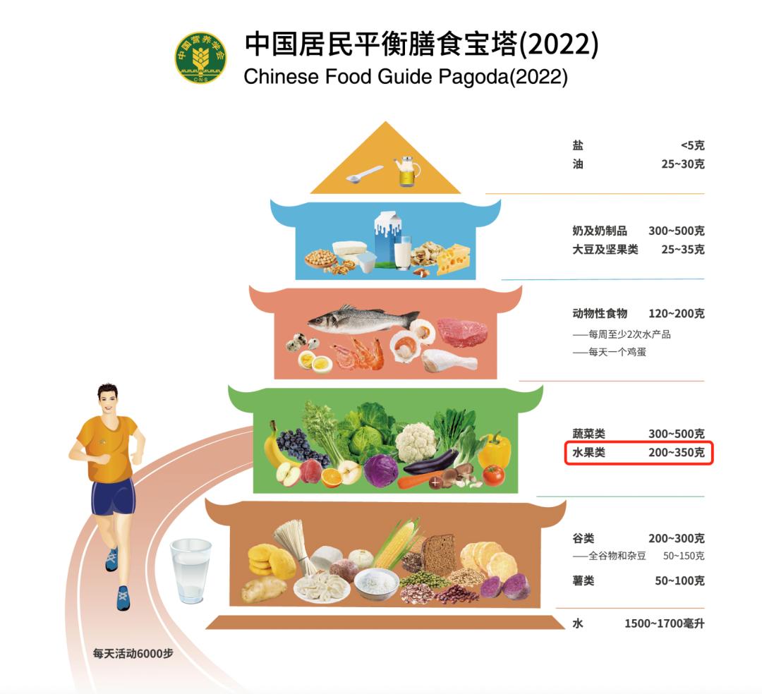 按照《中国居民膳食指南(2022)》,建议居民每天摄入200~350克水果。