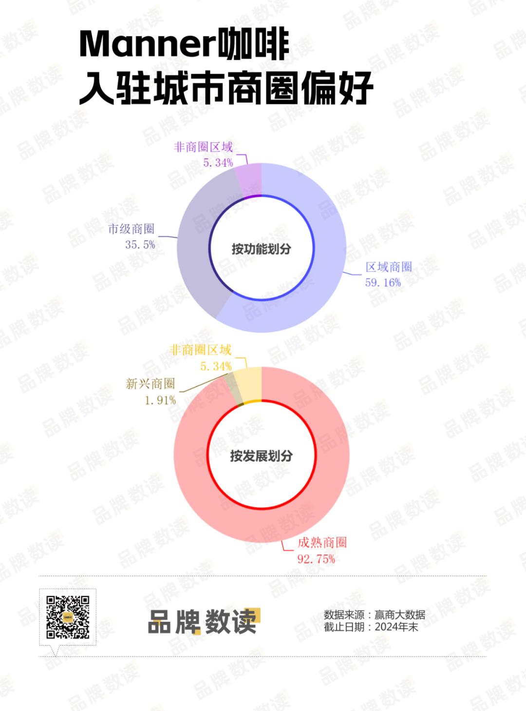 我们来看看Manner进入城市商业区的偏好。根据赢家的大数据,根据区域规划,区域商业区的门店占比接近60%,市级商业区的门店占总数的35%。;而且从商业区的成熟程度来看,超过90%的Manner商店正在完善商业区。