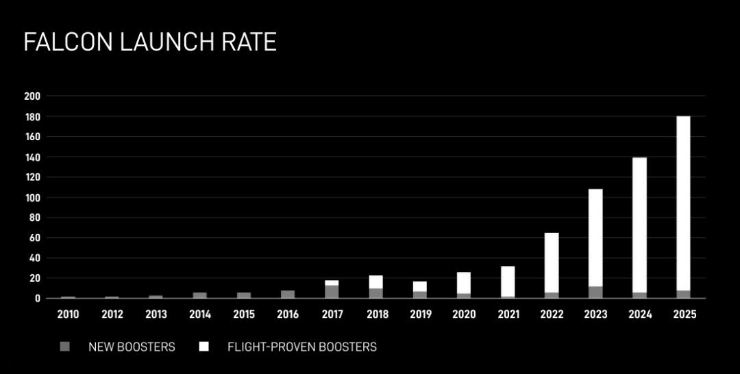 近年来,猎鹰9的发射频率迅速上升,但仍然不能满足星链的需要。 | SpaceX