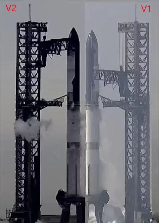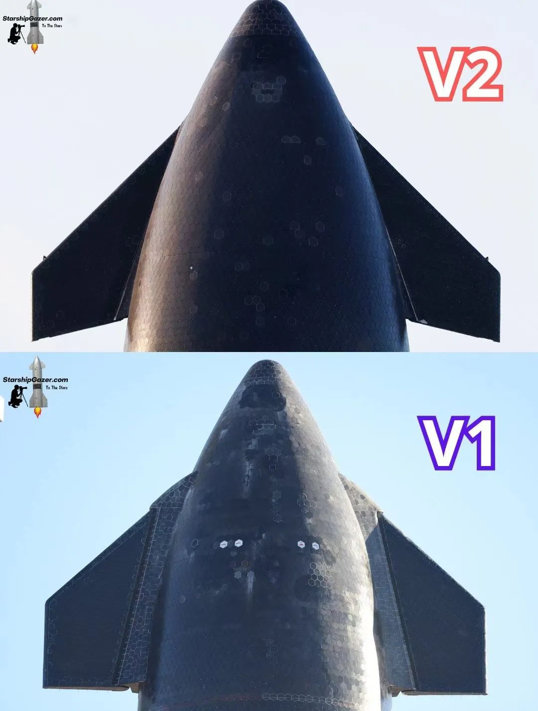 V1和V2版的前翼从迎风面对比。 | StarshipGazer