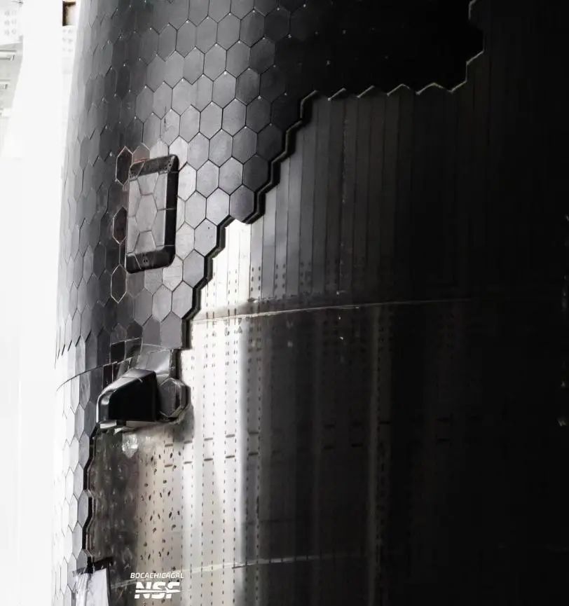 V2星舰选用最新一代隔热瓦,增加了备用层,防止部分隔热瓦缺失或损坏。