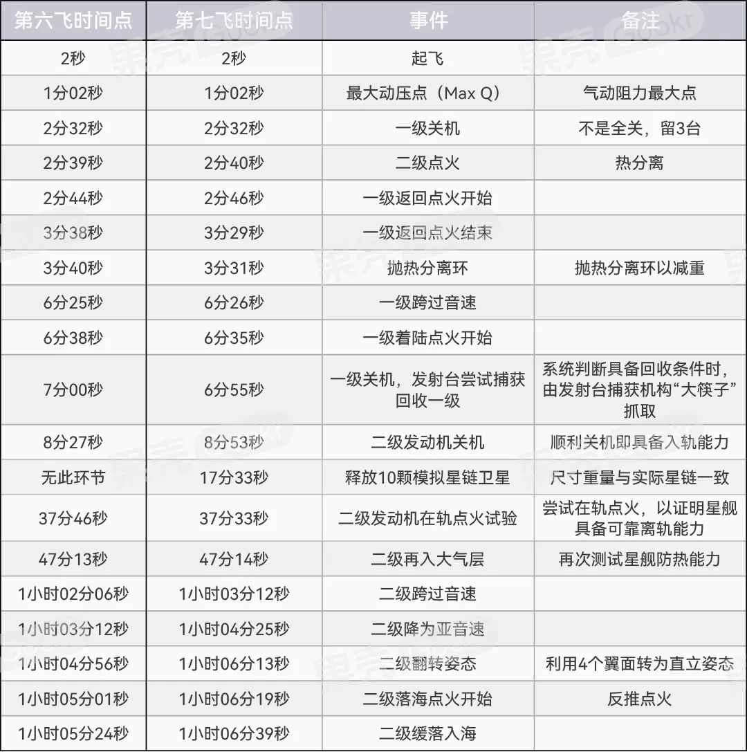 第七次和第六次星舰发射时间对比 | 信息来源:SpaceX