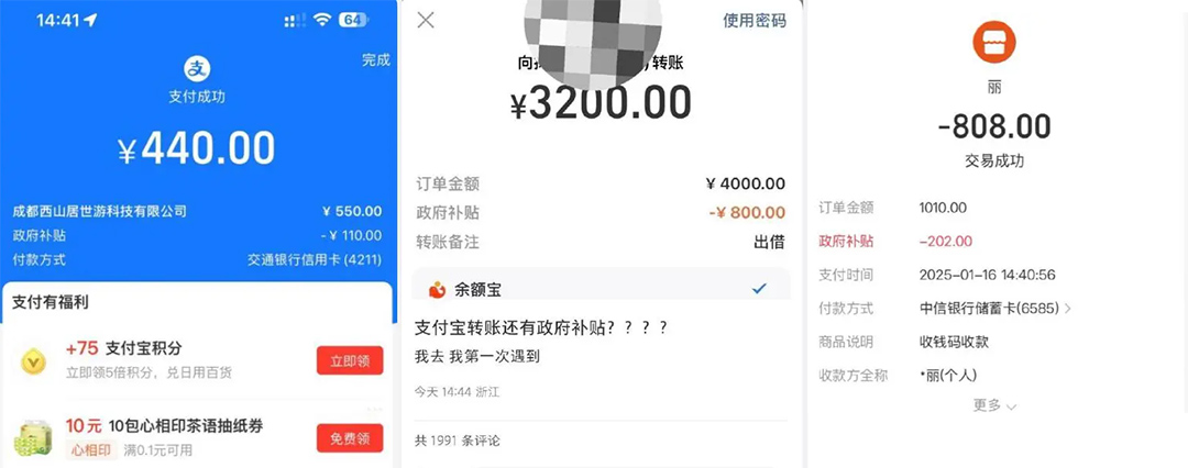 网民说:“在购物、还信用卡、交签证等场景中,14:40-14:在45期间,所有订单都被政府补贴减少了20%。疑似支付宝在测试国家补贴时有线上漏洞,导致大家可以直接用国家补贴减少线上支付。"