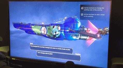 由于我们只需直接使用麦克风。 NPC 对话,此时游戏将根据我们的语音命令自动改变飞船的涂装!