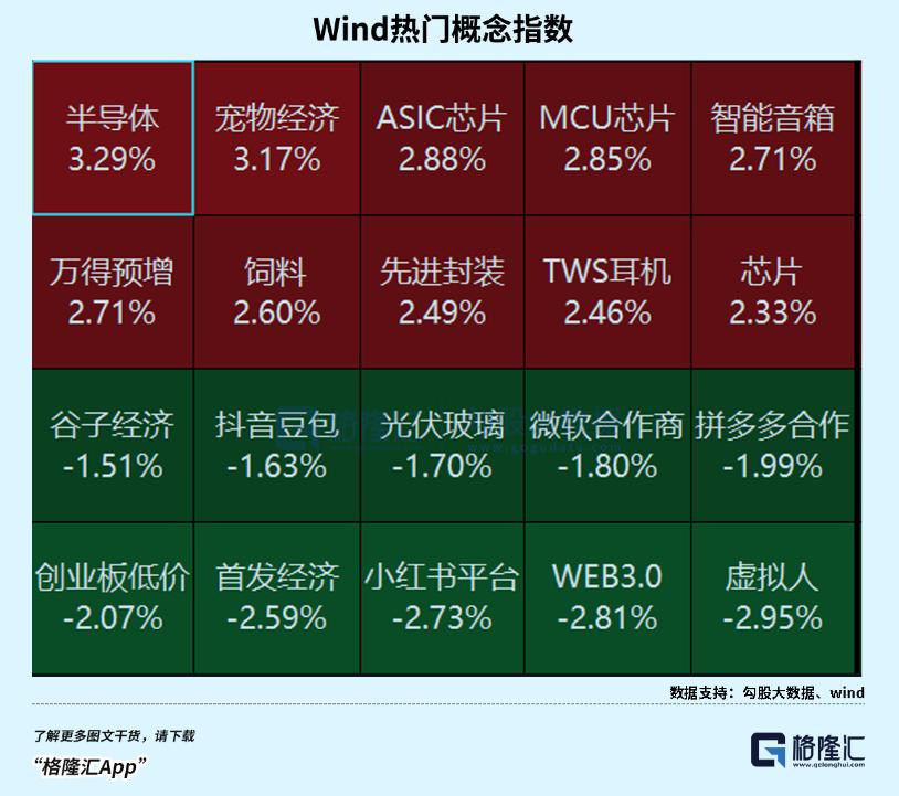 今天的半导体板块早上表现不错,下午强势上涨,一下子占据了wind热门概念指数前10名中的5位,包括第一名。