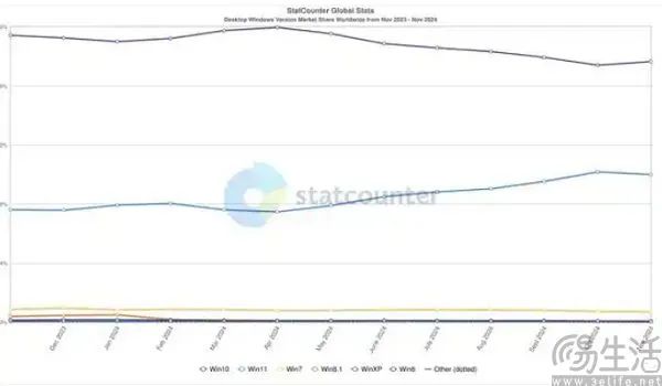 据Statcounter发布的相关数据显示,自去年11月以来,它一直在下降,Windows 11月份的市场份额从11月份的34.94%下降到12月份的34.1%、在即将失去官方支持的情况下,降低了0.84%,Windows 十大市场份额却逆势增长。