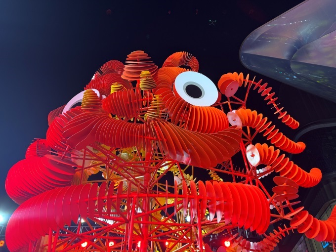 新建的城西银泰城外街在代表入口处增加了伞形天慕设备。当然,最引人注目的是“11yiyi”艺术装置。这种狮子艺术装置有三个面:红色、橙色和黄色。它是城西银泰特别邀请的融合设计图书馆。德国艺术家Chris结合石狮、舞狮和太平泥在传统工艺中创造的动物形象。