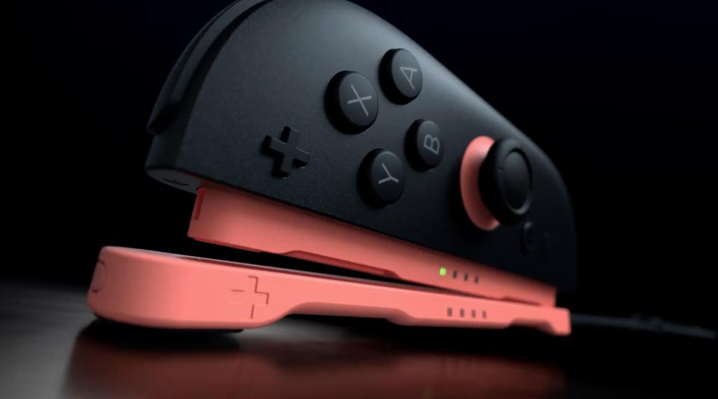 从宣传片中可以看出,两边的 Joy-Con 从上一代导轨卡扣式设计,将摇杆改为磁吸式,安装拆卸更加方便。 触电式擦槽设计,可以更方便地安装在机身或枪托上。