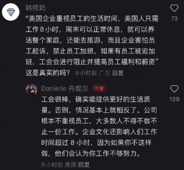 她们第一次知道,中国人在吐槽。 96,其实只有大企业高收入群体才有。这些人中午休息两个小时,在公司食堂吃饭,不需要做其他工作。然而,美国人通常需要“灵活就业”,做两三份工作来养活自己。他们是 496,许多人早上四点开始工作,一天工作十几个小时,一周工作六天。美国资本家太聪明了,他们会故意控制一份工作。 8 在一个小时内,你需要支付完整的医疗保险,你不需要支付足够的工资。员工可以找到另外两份工作...这样员工“工作饱和”,老板“劳动力成本低”,美国政府“就业数据好,屡创新高”...三赢,赢麻。