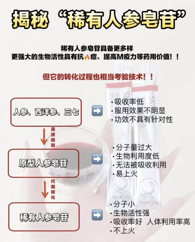 在人参皂苷中再次使用【稀有人参皂苷】最具药用价值,顾名思义,就是比人参皂苷更稀缺,更有效。