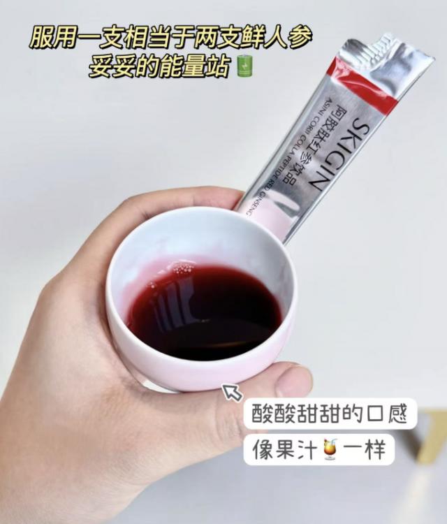 像伊能静、章小姐、各大爱养生的女明星,都会直接喝酒。巨子生物的 SKIGIN 红参饮,不要平常动辄 7-8 一个小时的直播,真的撑不住了。