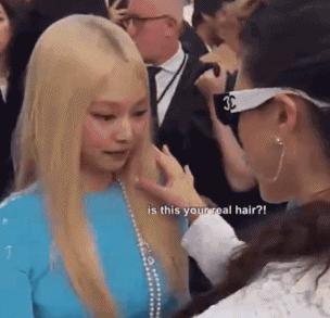 聊天中 Margaret 直接摸着 Jennie 头发问:你的头发是真的吗?