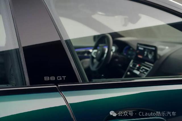 车门门槛和 B 柱上标配 B8 GT 文字标识,可选拉花则采用低调的碳纤维金属色,本车可选用七种车漆颜色,此车可选用七种车漆颜色, 99 含有限量车辆 20 车辆将涂上两种颜色,即蓝色或绿色与黑色搭配。