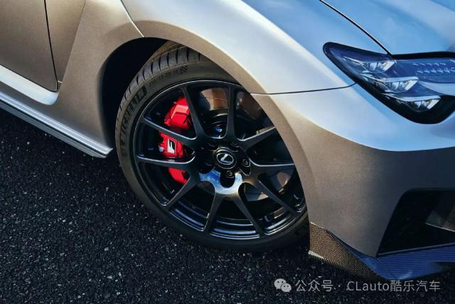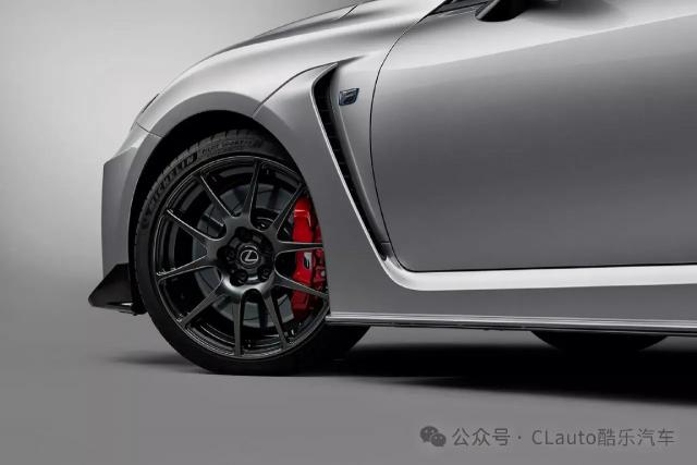 2025 款雷克萨斯 RC F 最终版搭载 19 英寸的 BBS 锻造合金车轮,车轮采用金属星光泽黑漆,组合而成。 Brembo 红卡钳。除黑色后视镜外,RC F 还采用了一些碳纤维车身部件,包括前尾翼、侧裙、后扩散器、主动后扰流板和车顶,类似于去年的碳纤维套件。