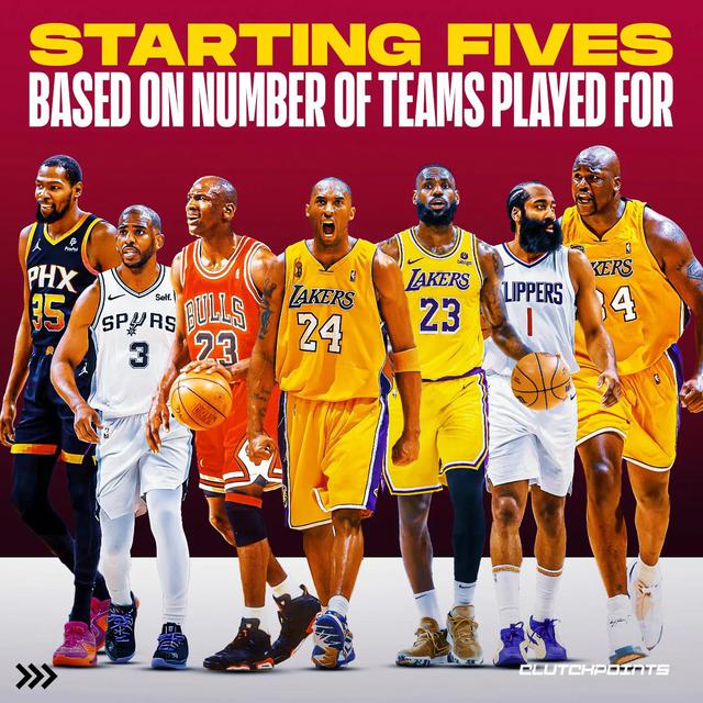 例如最近的吉米巴特勒事件,由于某些原因,他多次被球队交易送走。但是,NBA 历史上也有很多球队效力太大的球员,实力也不错。因此,美国媒体列举了七组不同的五人阵容,他们都专注于效力过的球队频率。让我们来看看。