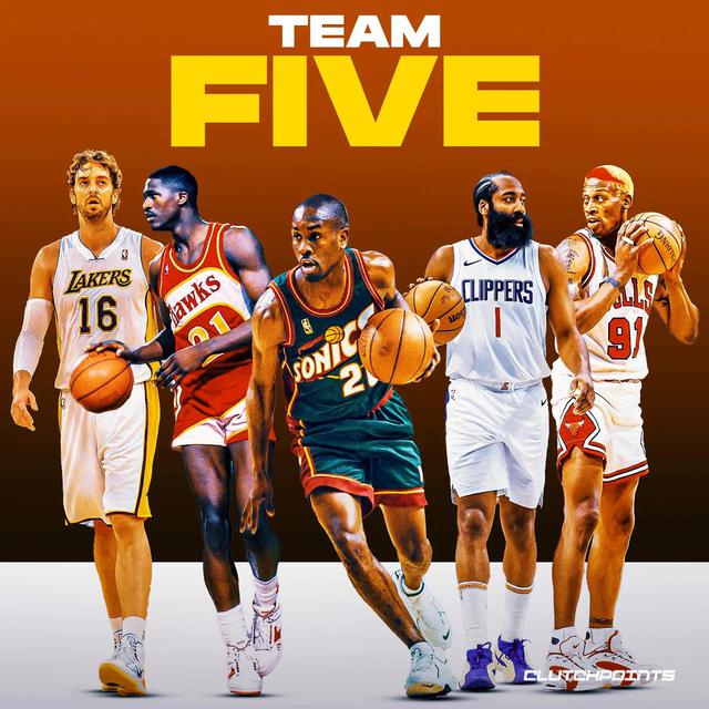 这个五人组由加里佩顿、哈登、罗德曼、加索尔、多米尼克威尔金斯组成。哈登罗德曼和多米尼克威尔金斯是这个阵容中最好的球员,但是如果他们合作,就很难成功。