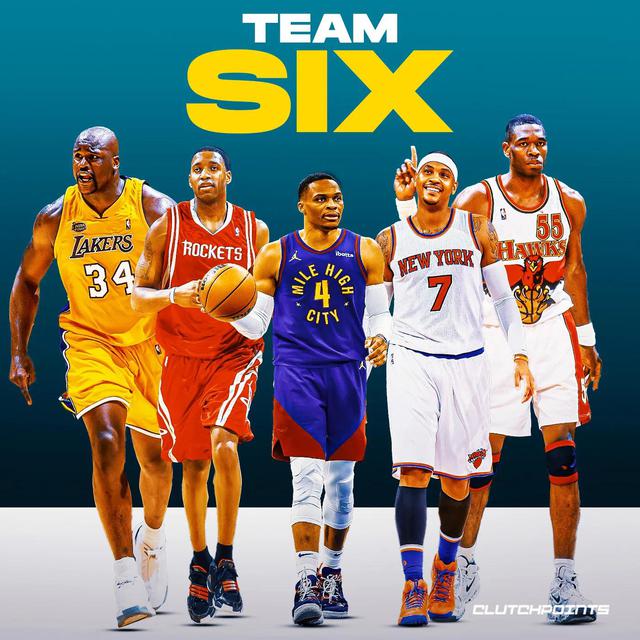 这五个人组由威少、卡梅隆安东尼、麦迪、奥尼尔和穆托姆博组成。威少、麦迪和卡梅隆安东尼都被认为是独一无二的球员,但幸运的是,他们的伙伴是奥尼尔和穆托姆博,他们都是非常无私的内线球员,他们的内线统治力非常出色。尤其是奥尼尔,他是历史十大超级明星之一。
