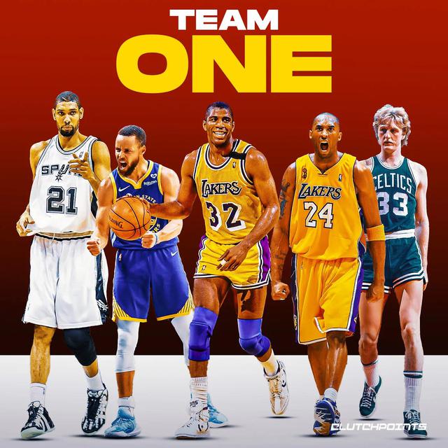 这五个人组由库里、科比、魔术师约翰逊、拉里伯德和蒂姆邓肯组成。仅科比、魔术师约翰逊、拉里伯德和蒂姆邓肯就足够自豪了。四个人的进攻和防守都是年度最佳球员。