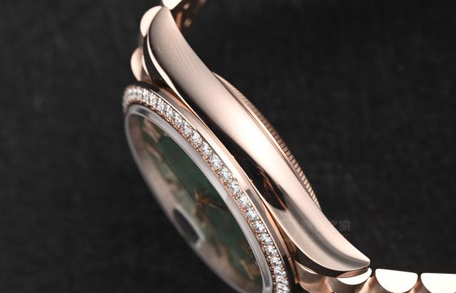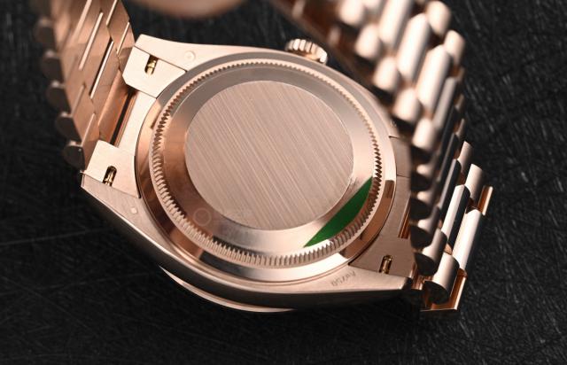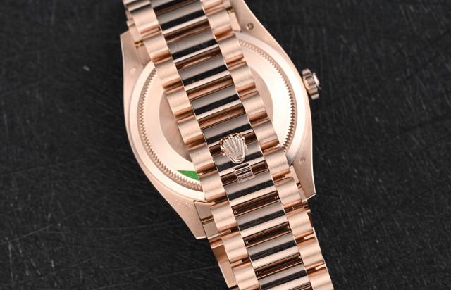 DD 标志性三格实心链节的元首型表带是 1956 一年是牡蛎恒动礼拜日历。(Oyster Perpetual Day-Date)目前专门设计的日历型和贵金属型日志型只用于礼拜日历型。(Datejust)中。18K 永恒玫瑰金的元首表带与表盘搭配,再加上隐藏式折叠皇冠带扣,更加和谐高贵。(图 / 文 腕表之家 YIYI)