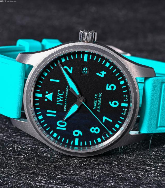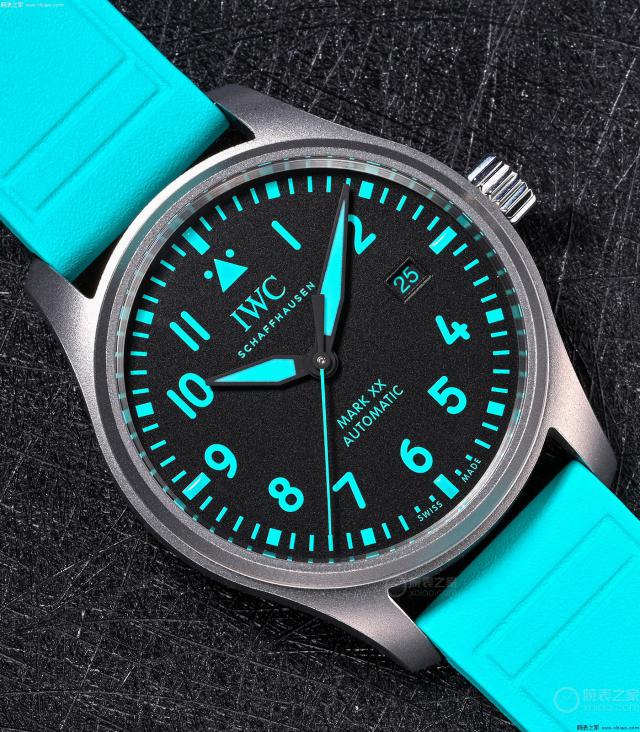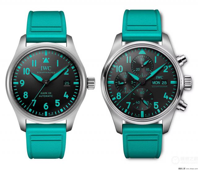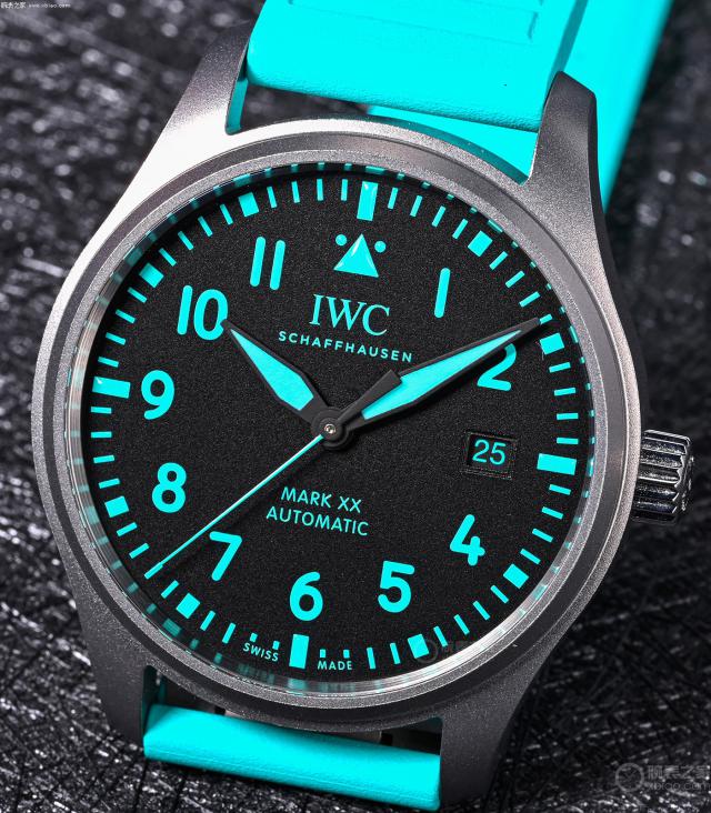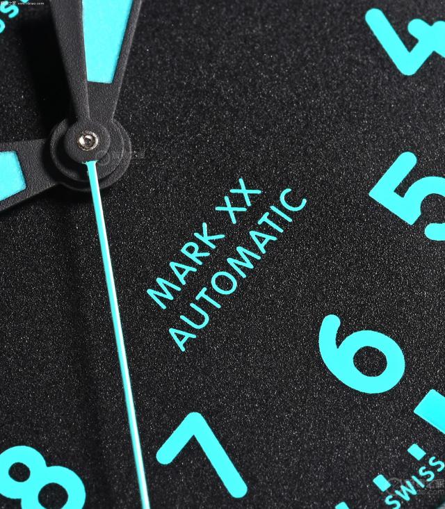 马克 20,是万国飞行员系列中的大三针基础款。“马石油”是马克 20 在此基础上,所有的手表盘都被“马石油绿”颜色所取代。我们可以看到,除了指针、时标、盘面印刷,连手表的日历都被“马石油绿”所取代。手表的黑色盘面改为颗粒磨砂效果。与常规马克相比, 20,“马石油”特别款很酷。