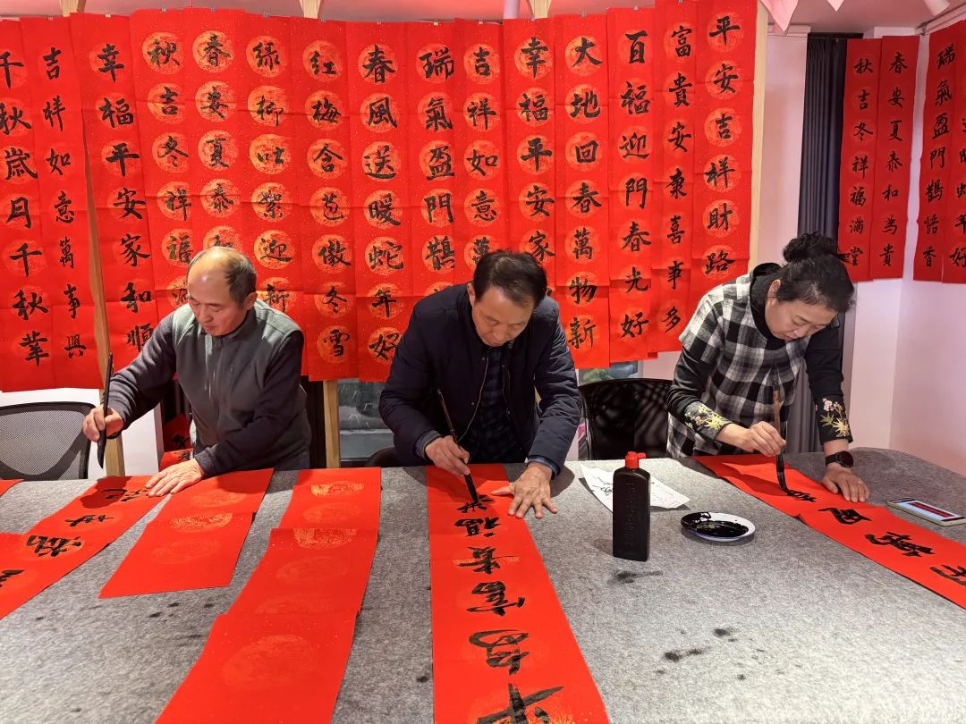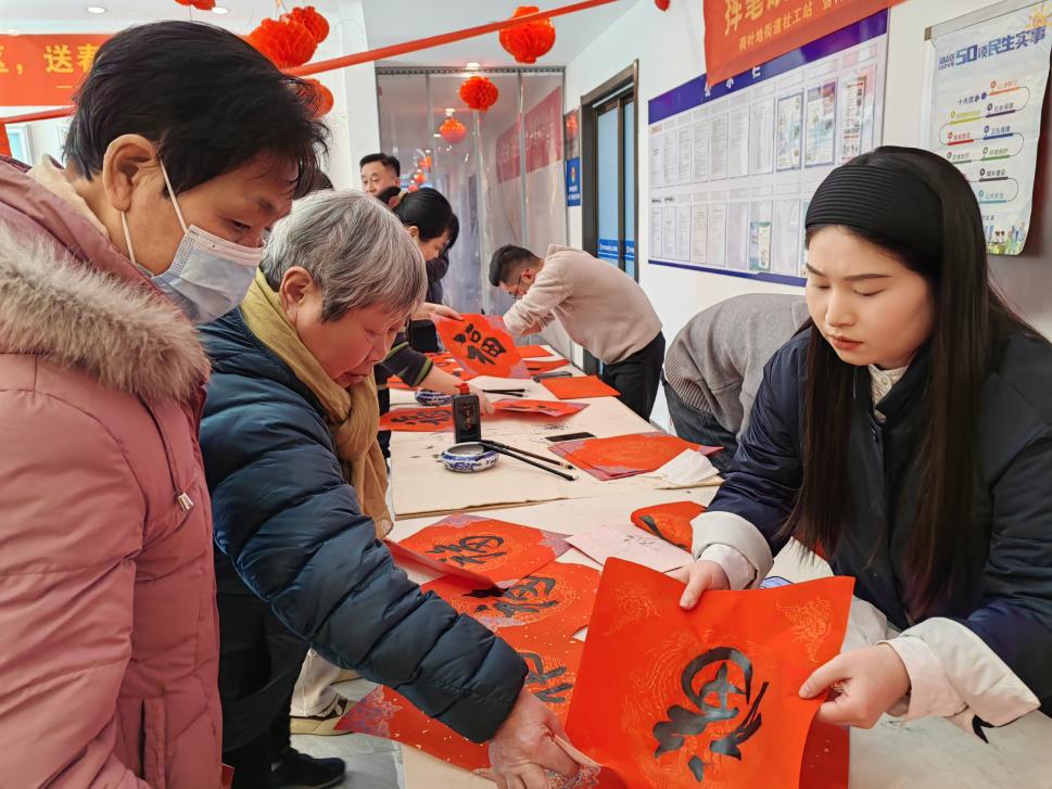 琥珀街北苑村社区组织志愿者泼墨,在红色春联纸上写下对新年的美好期待。同时,组织志愿者和工作人员上门为空巢老人写春联和祝福,向家家户户传递温暖的新年祝福。
