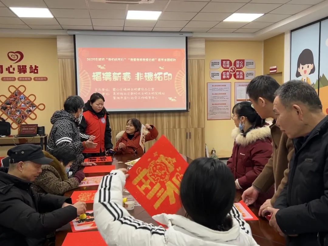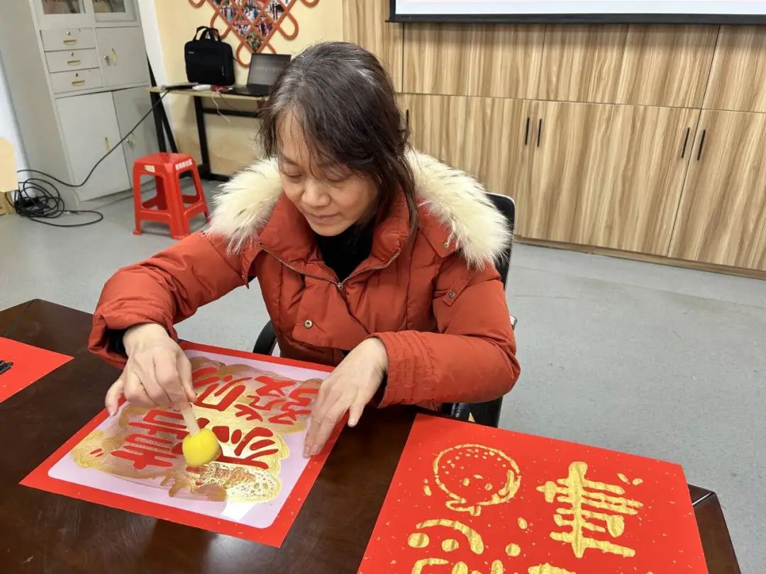 在五里墩街青阳路社区,一场“新年快乐” 拓福字活动正在进行中。随着居民的巧手制作,“万事如意”、“蛇年大吉”、“年年有余”、“财源广进”等吉祥话语跃然纸上,营造出浓浓的欢乐气息。